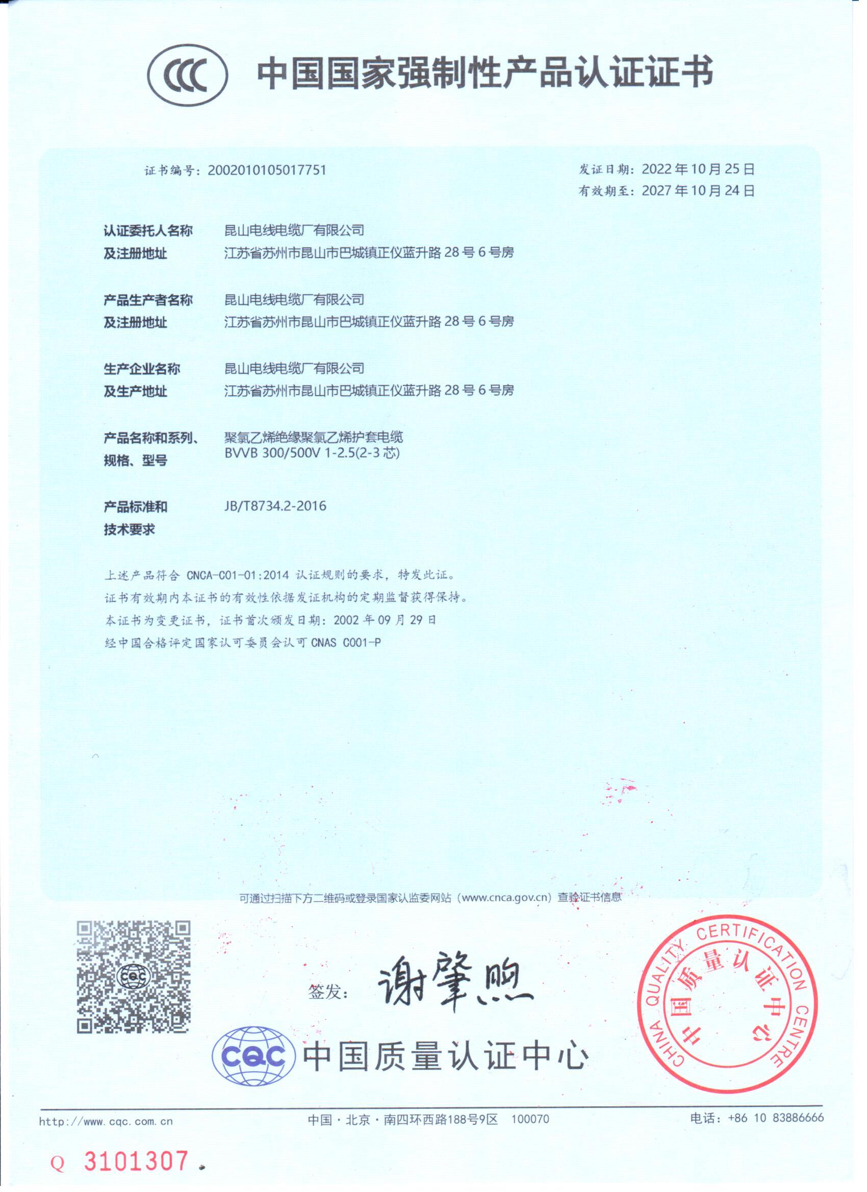 中國國家強制性產(chǎn)品認證證書 2002010105017751